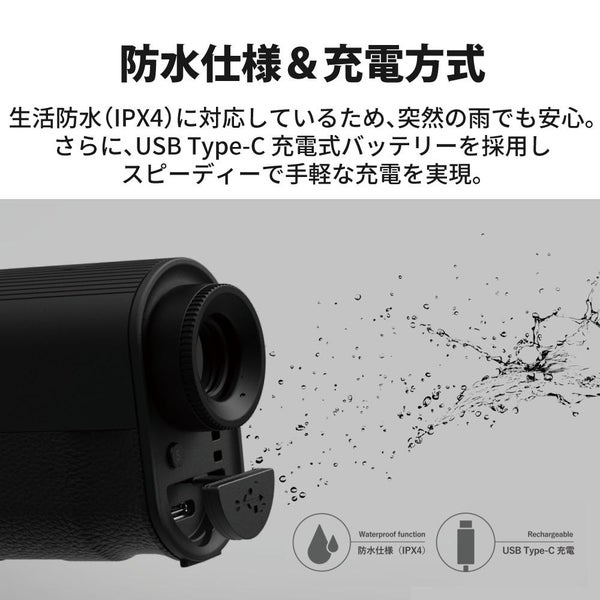 生活防水(IPX4)に対応しているため、突然の雨でも安心。さらに、USB Type-C 充電式バッテリーを採用しスピーディーで手軽な充電を実現。