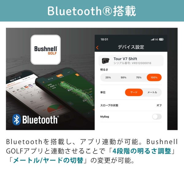 Bushnell GOLF アプリと連動させることで下記の変更が可能。