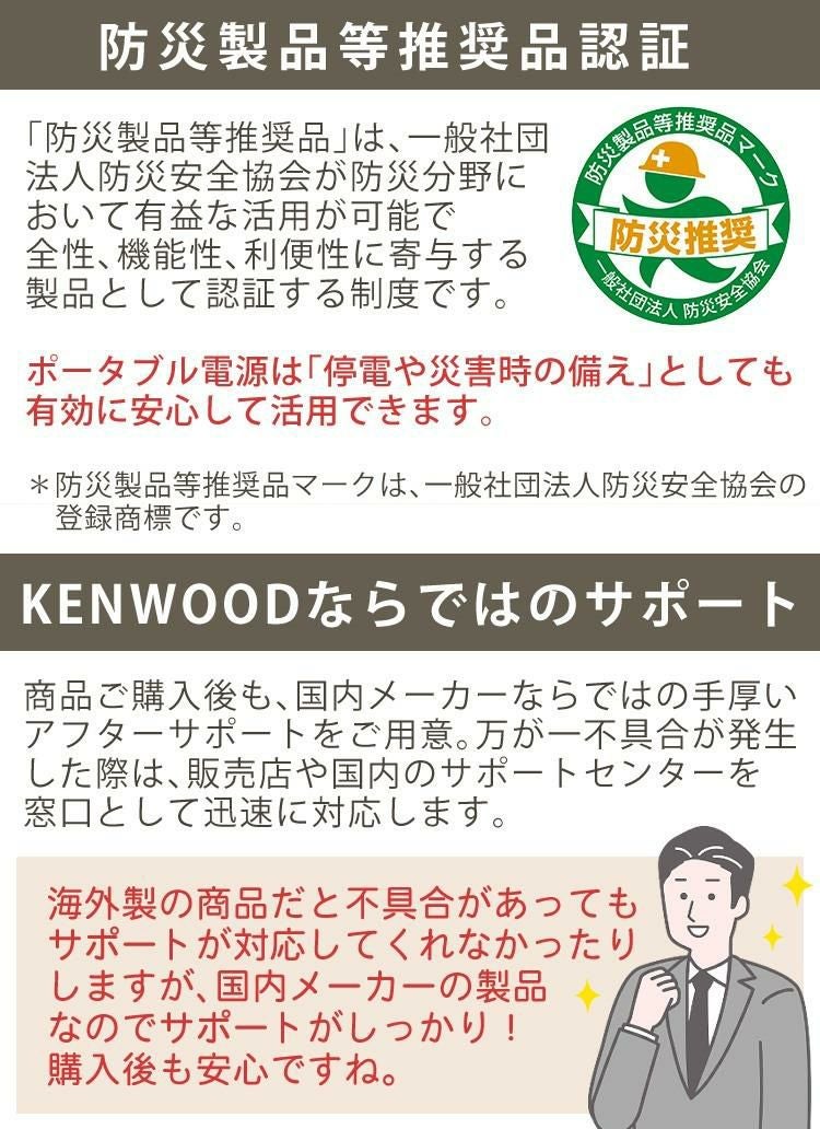 カー用品やオーディオなど、様々な製品で培った『KENWOOD』の品質管理基準をクリアし、高い安全性を確保しています。