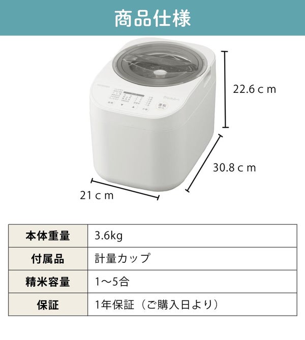 | 精米容量 | 0.18L(1合)~0.9L(5合) |