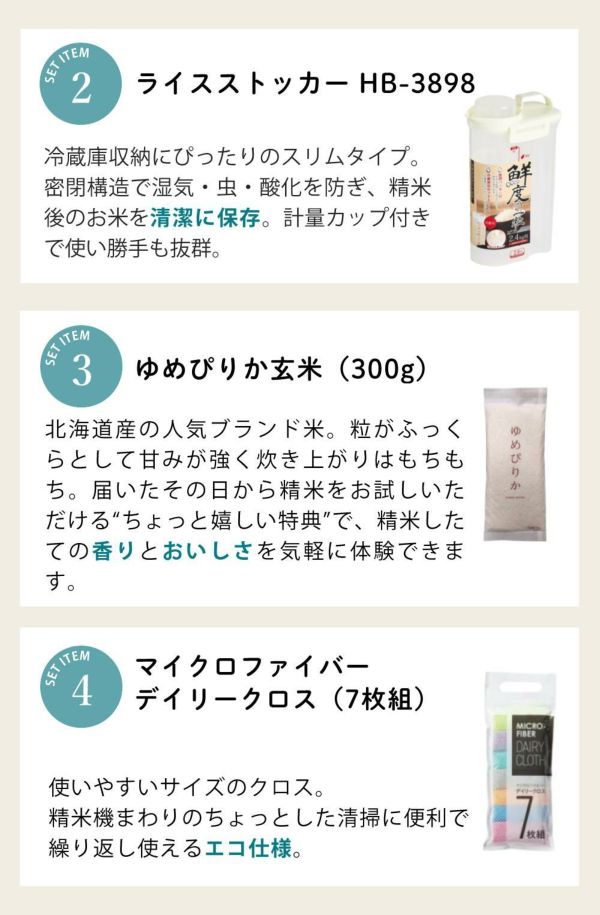酸化した白米の表面を磨き、白さとおいしさをよみがえらせます。