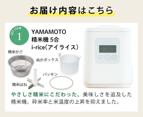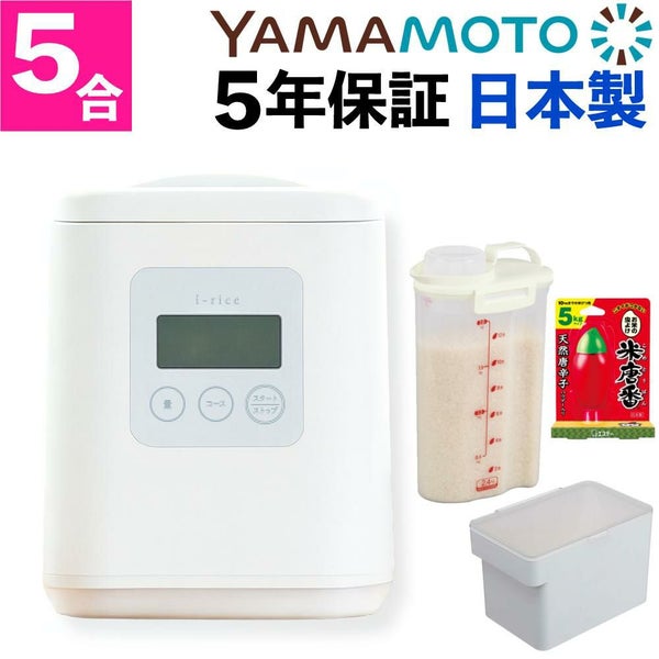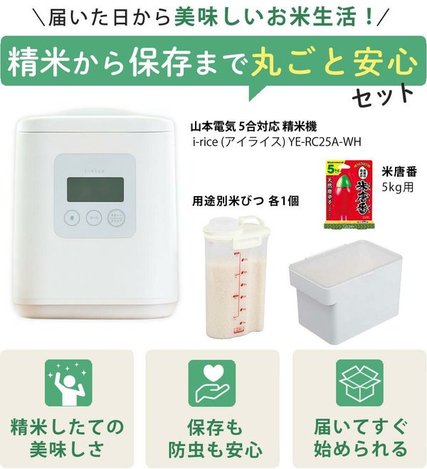5合対応 稼働音を抑えた家庭用精米機 山本電気 精米機 家庭用 i-rice アイライス YE-RC25A-WH ホワイト + シンク下米びつ + 冷蔵庫用米びつ + 米唐番5kg用セット