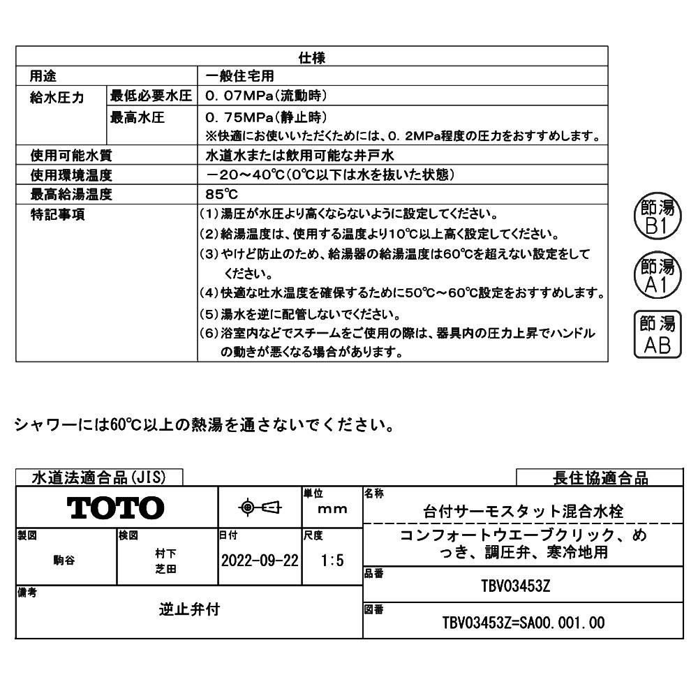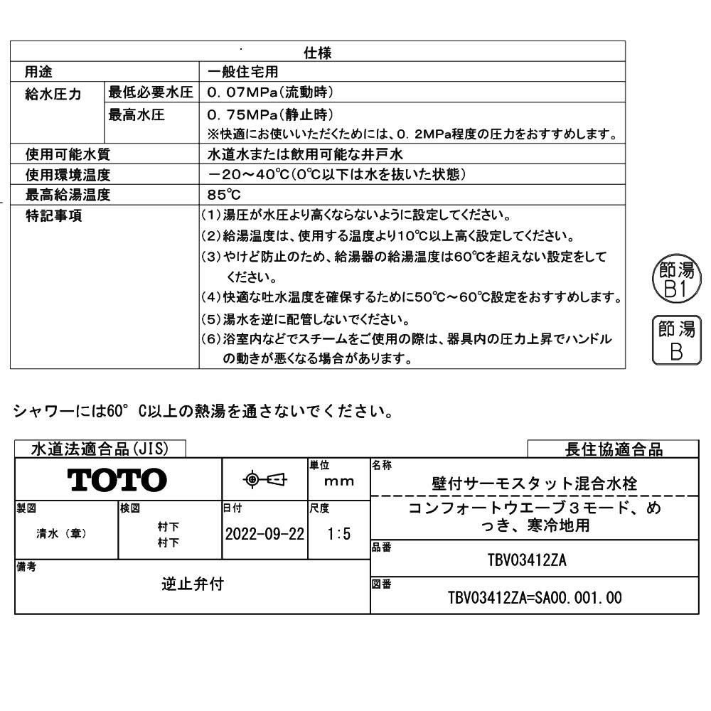 他の画像を見る 浴室用 寒冷地仕様 壁付サーモスタット混合水栓 TOTO 浴室用 壁付サーモスタット混合水栓(コンフォートウエーブクリック、調圧弁、寒冷地用) TBV03446Z1(ラッピング不可) 販売価格 ¥ 22,400 税込 カートに入れる お気に入りに登録する (0件)