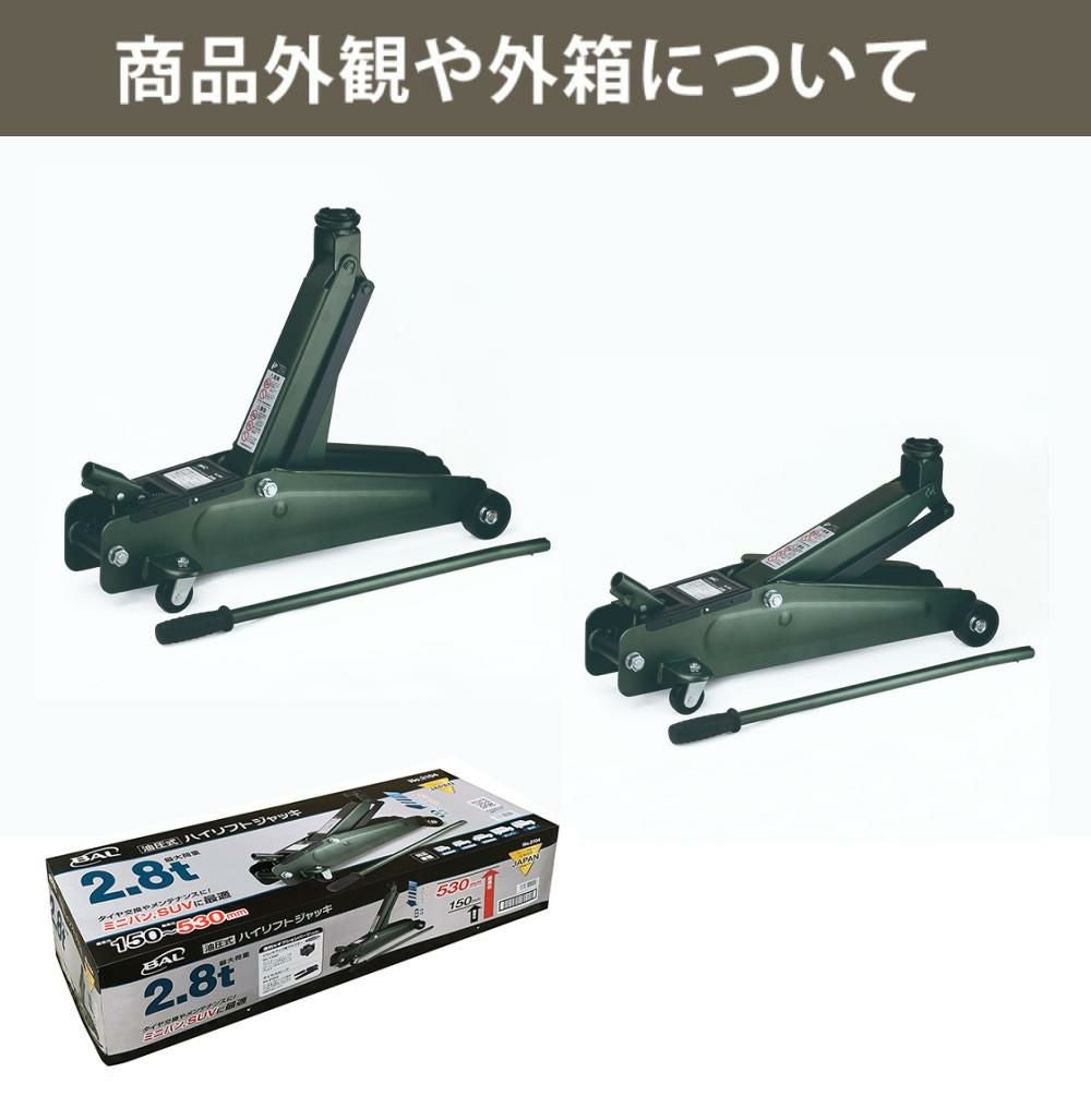 他の画像を見る ジャッキアップ 車用工具 メンテナンス用工具 ガレージジャッキ 車載工具 ハンドル付き 大橋産業 BAL 油圧式 ハイリフトジャッキ 2.8t 2104(ラッピング不可) 販売価格 ¥ 11,305 税込 カートに入れる お気に入りに登録する (0件)