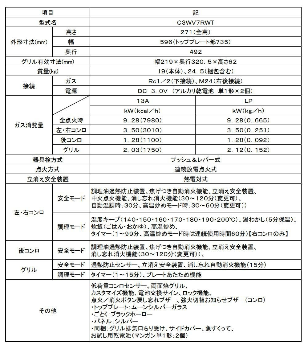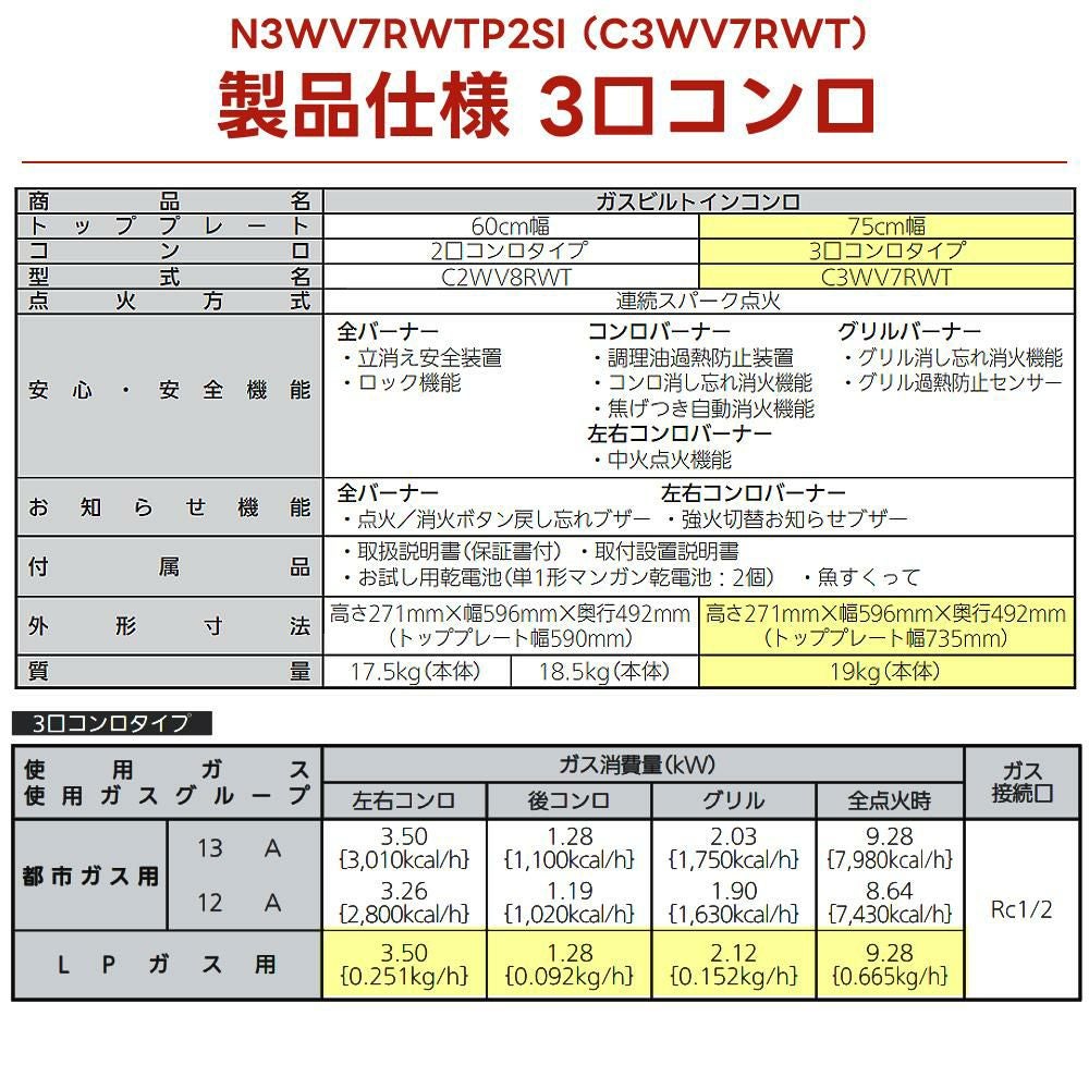 他の画像を見る プロパンガス LPガス 3口 幅75cm 両側強火 ノーリツ ビルトインコンロ プロパン 75cm 3口 両側強火 ガラストップファミ N3WV7RWTP2SI LPG(ラッピング不可) 販売価格 ¥ 61,800 税込 カートに入れる お気に入りに登録する (0件)