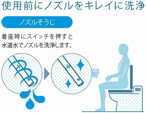着座時にスイッチを押すと、たっぷりの水道水でノズルを洗浄。