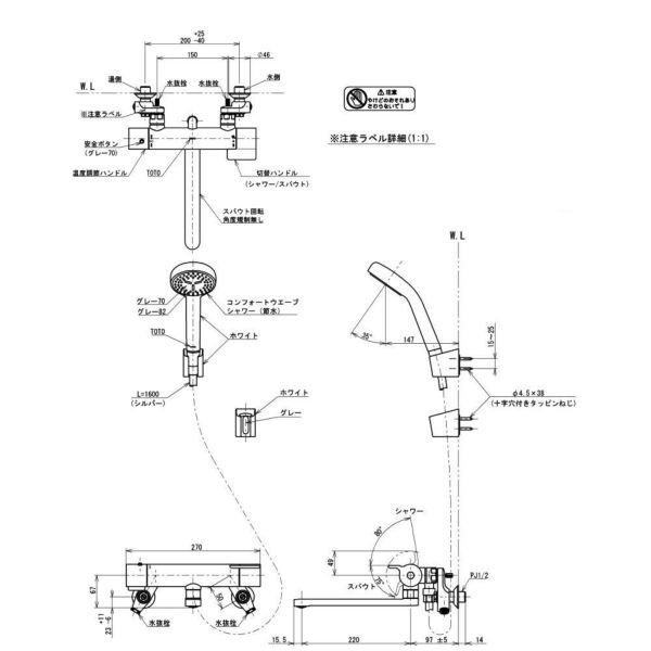 浴室用 寒冷地用 壁付サーモスタット混合水栓