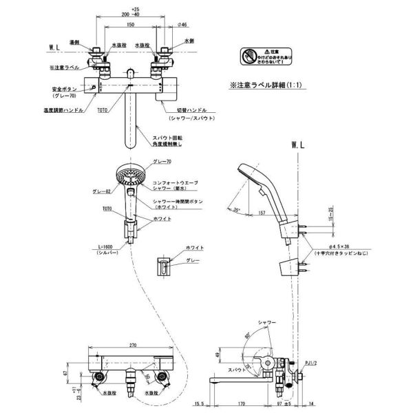 浴室用 寒冷地仕様 壁付サーモスタット混合水栓