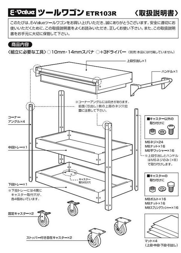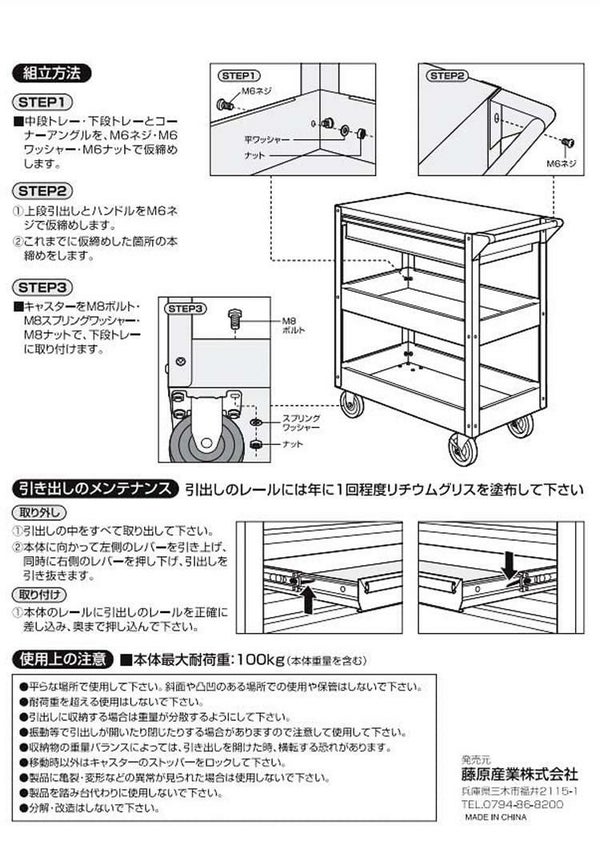 スムーズな引出しの開閉が可能なボールベアリング式スライドレールを採用したツールワゴンです。