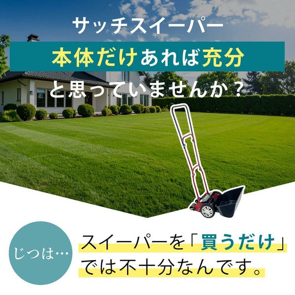 ● サッチスイーパー本体・専用カバー・交換用コームがセットになった、これ1つで芝生のメンテナンスが完結!