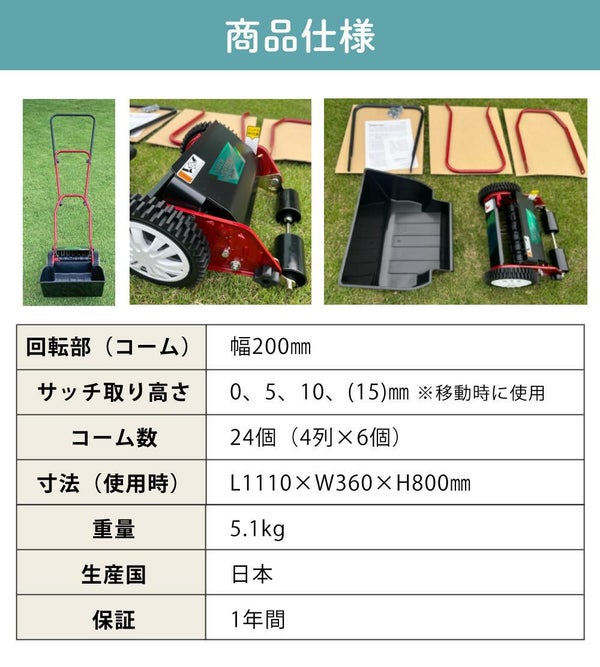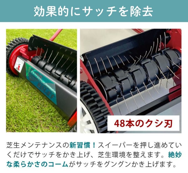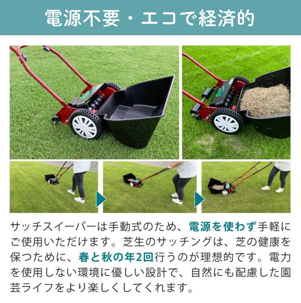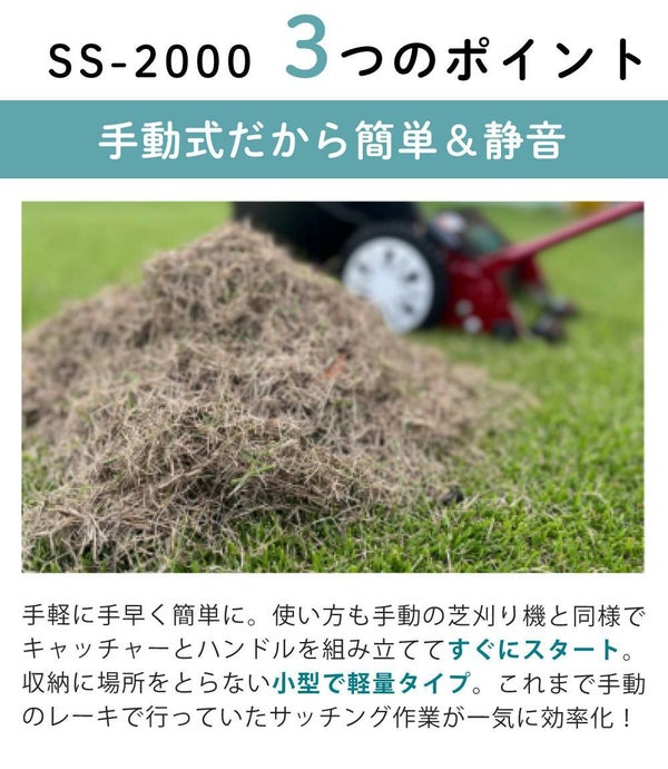 芝生 の 手入れ に便利な サッチスイーパー SS-2000 は 手動スイーパー です。芝刈り 後の 芝生メンテナンス や サッチ除去 が手軽にでき、ガーデニング用品 としても重宝します。交換部品 が入った セット販売 で、長く愛用できます。芝生 の 掃除 を効率よく行いたい方におすすめのアイテムです。