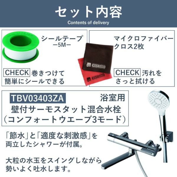 TOTO 壁付サーモスタット混合水栓(コンフォートウエーブ) TBV03403ZA テープ クロス付き 3点セット(ラッピング不可)