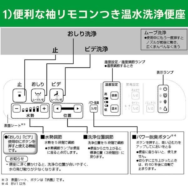 TOTO の 温水洗浄便座 ウォシュレット BV2 は 清潔 な ノズル と 脱臭機能 を 搭載し、簡単取付 が 可能。節電機能 や シンプル設計 で トイレ を 快適 に します。