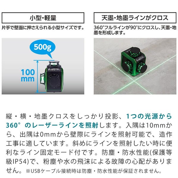 便利 繰り返し 充電 リチウムイオンバッテリー コーンミラー 固定モード付 採用 1つの光源 60°レーザーライン 照射 縦ライン 横ライン