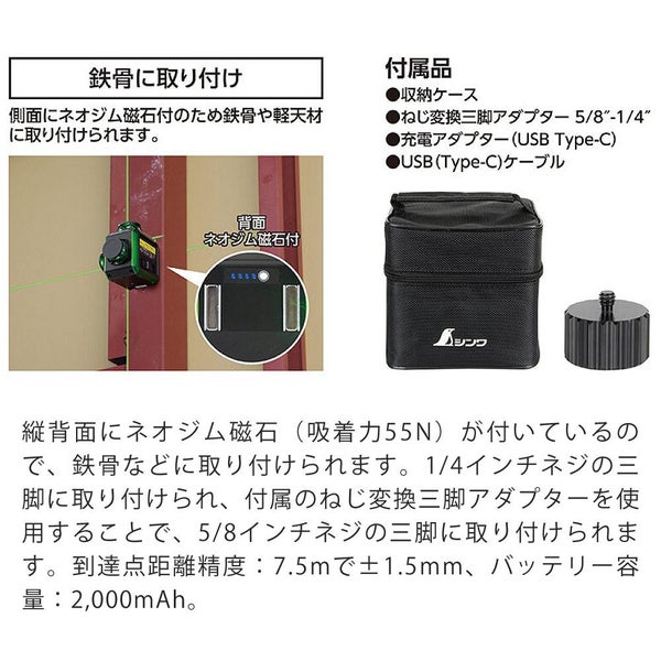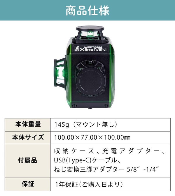 検索ワード:シンワ レーザー ロボ Xline MINI グリーンフルライン 地墨クロス 71630 軽量 コンパクトサイズ 持ち運び