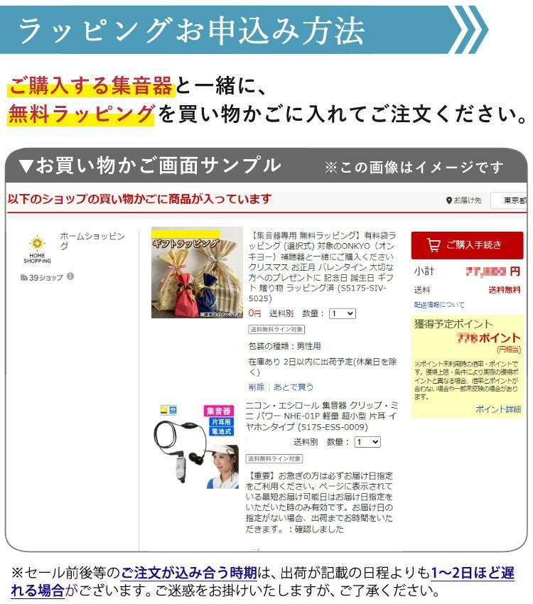 他の画像を見る 注意点etc ご確認の上【ラッピング希望の商品】と【有料ラッピングサービス】を、一緒にお買い物かごに入れて注文を完了させてください。 (集音器専用 無料ラッピング)対象の集音器と一緒にご購入ください (選択式) クリスマス お正月 父の日 母の日 敬老の日 大切な方へのプレゼントに 記念日 誕生日 ギフト 贈り物 ラッピング 販売価格 ¥ 0 税込 注意点etc ご確認の上【ラッピング希望の商品】と【有料ラッピングサービス】を、一緒にお買い物かごに入れて注文を完了させてください。 カートに入れる お気に入りに登録する (0件)
