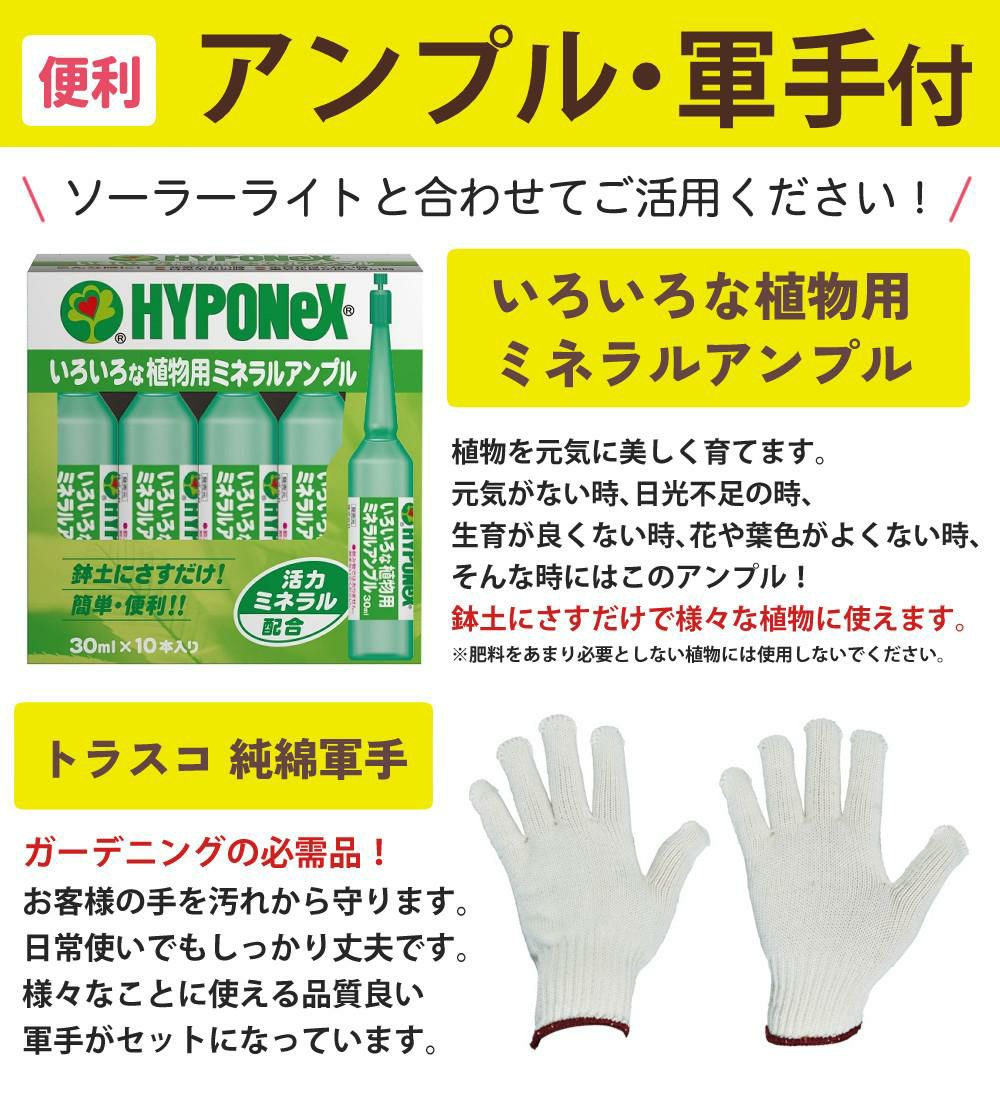 他の画像を見る タカショー LGS-LH02P ブラック ひかりノベーション SUNCHARGE 花のひかり アンプル 軍手 セット(ラッピング不可) 販売価格 ¥ 18,810 税込 カートに入れる お気に入りに登録する (0件)