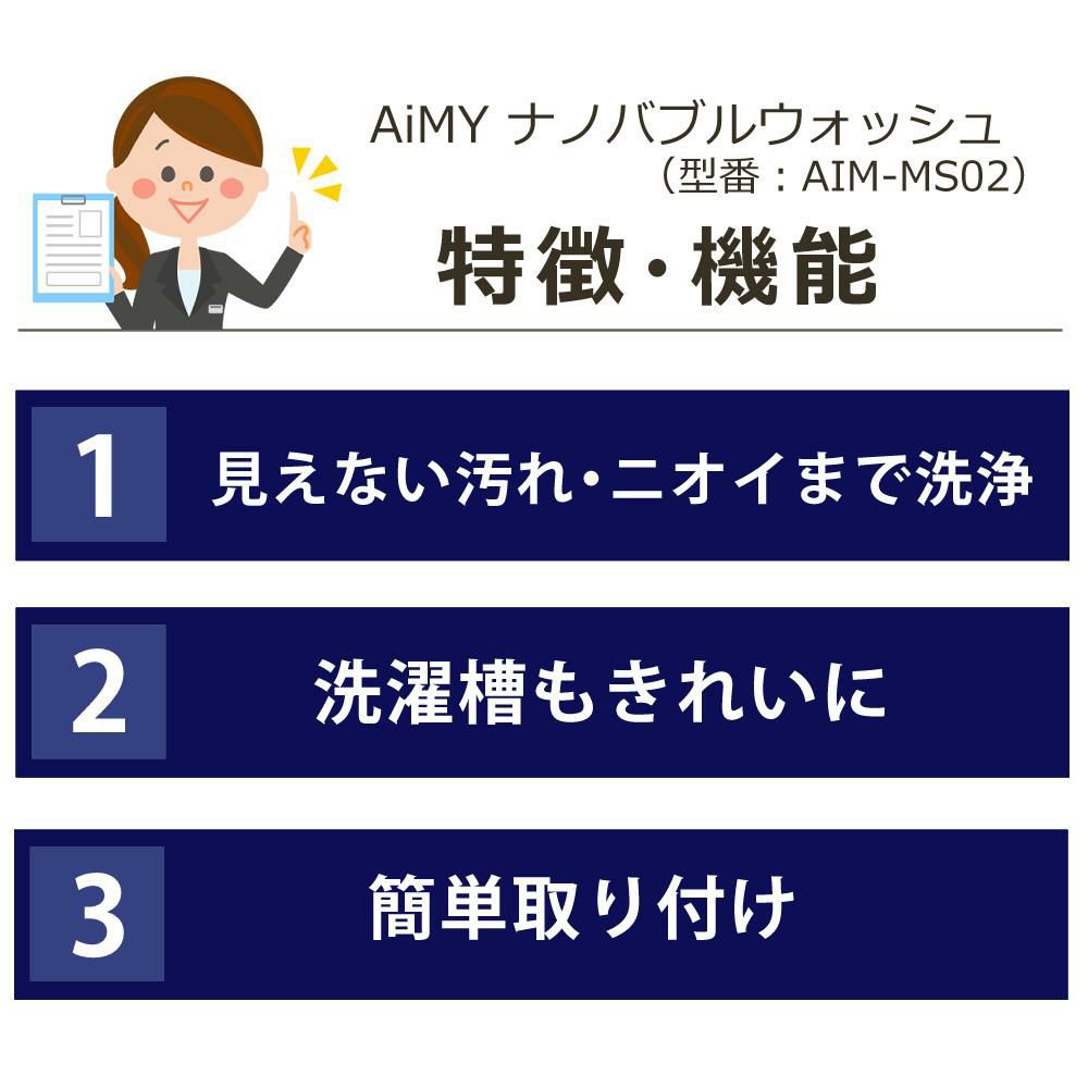 他の画像を見る 使いの洗濯機につけるだけでナノバブルが発生し、洗浄力がアップする洗濯アダプター。 AiMY 洗濯アダプター ナノバブルウォッシュ AIM-MS02 販売価格 ¥ 9,980 税込 カートに入れる お気に入りに登録する (0件)