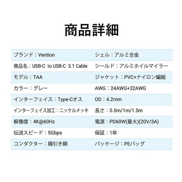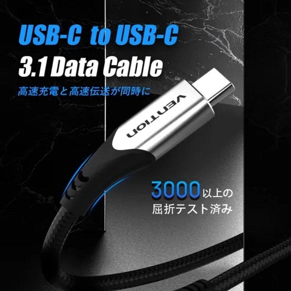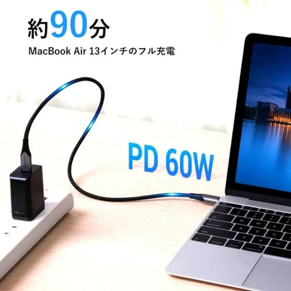 USB-C対応機器同士を高速5Gbpsで接続。PD最大60Wの急速充電と4K映像出力に対応し、耐久性の高いナイロン編組ケーブルで日常使いに最適です。