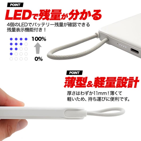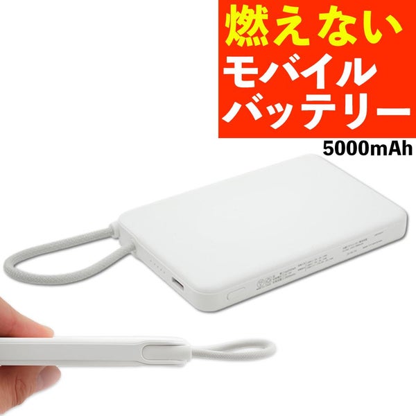 モバイルバッテリー 5000mAh 発火・爆発リスク 低減 準固体電池 安全設計 ケーブル一体型 1000回充放電 長寿命 2倍長持ち PSE適合 衝撃に強い ゲルポリマー スマホ充電器 防災 type-c
