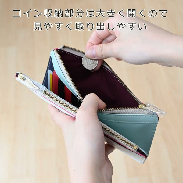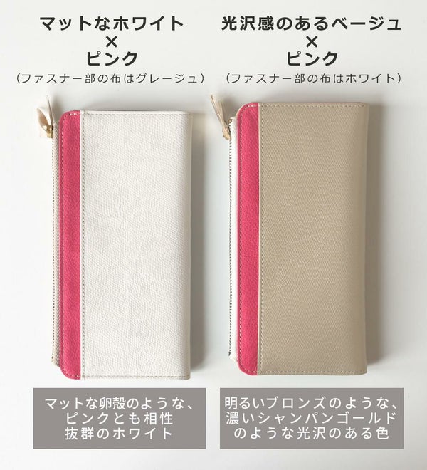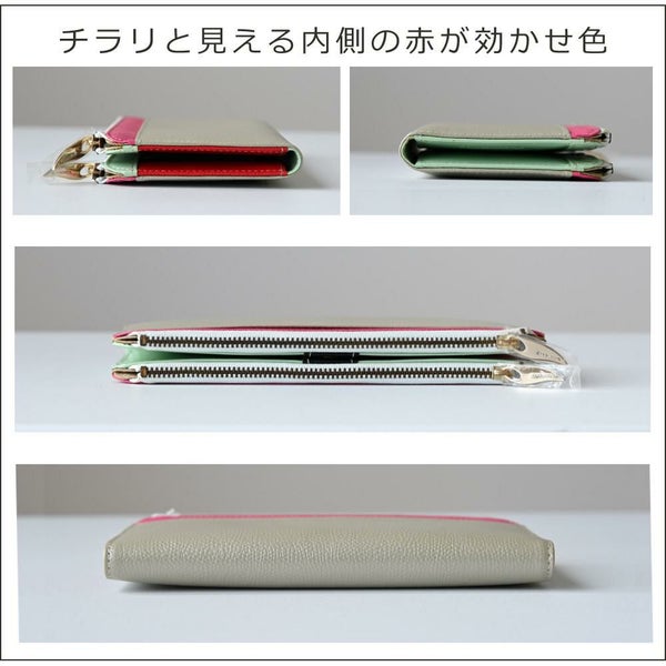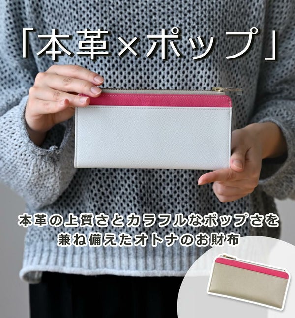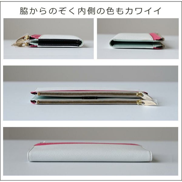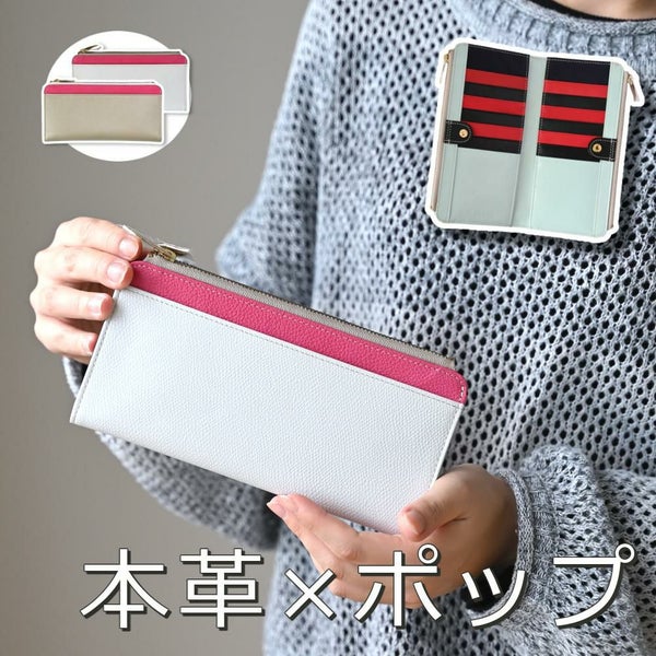 外側はバイカラー、内側はマルチカラーの、個性を楽しめる長財布。