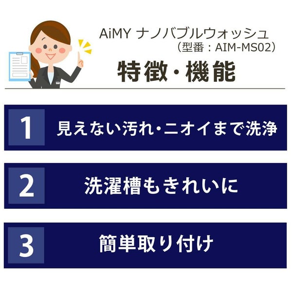 検索ワード:AiMY マイクロナノバブル ナノバブル NANO-BUBBLE 日本製 安心 安全 汚れを浮かせて 落とす 食べ物シミ 皮脂汚れ 泥汚れ