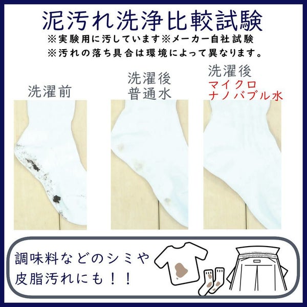 ナノバブルが汚れを吸着して浮かせるため、効率よく洗濯が可能。