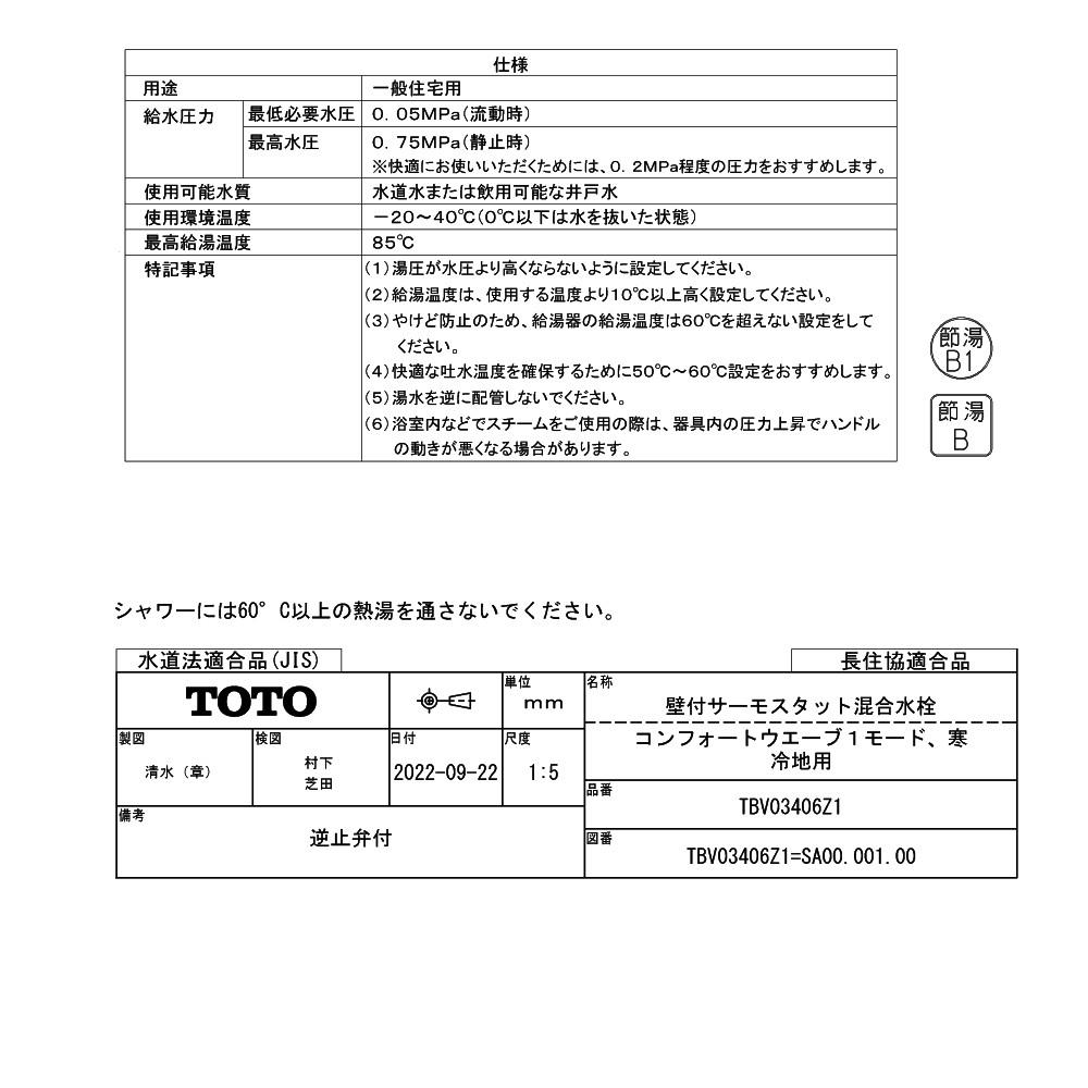 他の画像を見る 浴室用 寒冷地仕様 壁付サーモスタット混合水栓 TOTO 浴室用 壁付サーモスタット混合水栓(コンフォートウエーブクリック、調圧弁、寒冷地用) TBV03446Z1(ラッピング不可) 販売価格 ¥ 22,400 税込 カートに入れる お気に入りに登録する (0件)