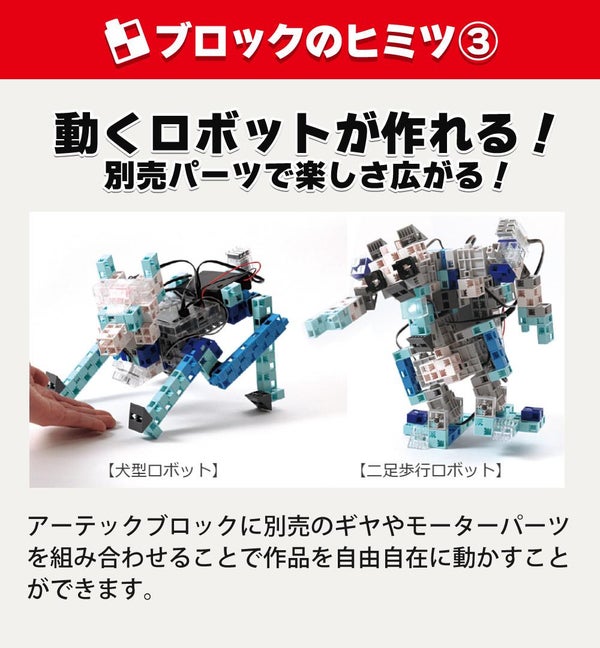 アーテックブロックに別売のギヤやモーターパーツを組み合わせることで