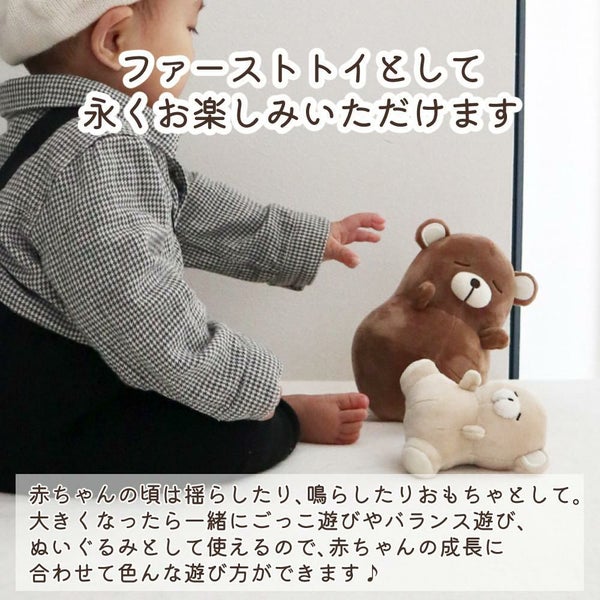 お母さんくまさんのおきあがりこぼし と赤ちゃんくまさんのラトルがセットに。