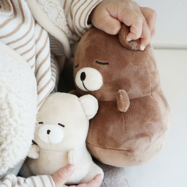 やわらかな布生地で、赤ちゃんが触れても心地よく、おやすみの時間もそっと寄り添います。