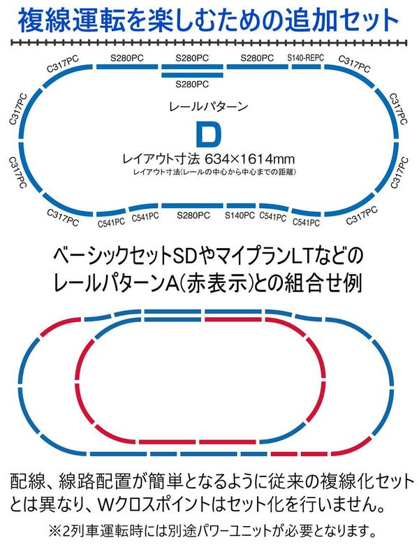 ・レールセットや、単品発売のレールとの組合せでレイアウトの拡張が可能
