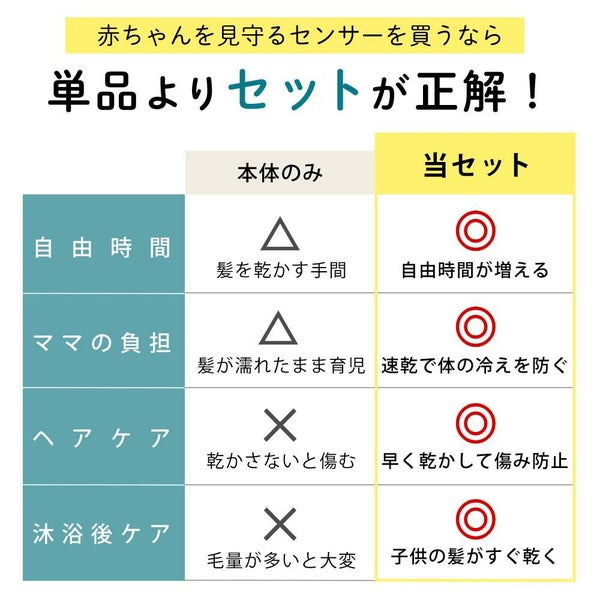 髪をゆっくり乾かす時間がとれないママさんにぴったりな「0359タオルセット」にしました。