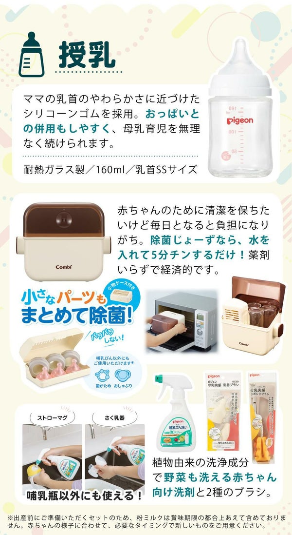 出産前にご準備いただくセットのため、粉ミルクは賞味期限の都合上あえて含めておりません。赤ちゃんの様子に合わせて、必要なタイミングで新しいものをご用意ください。