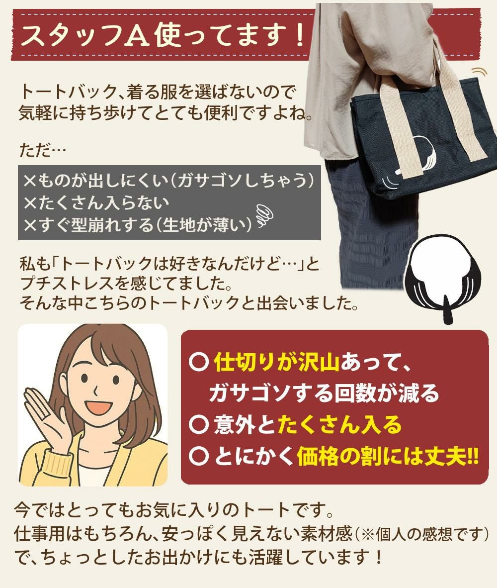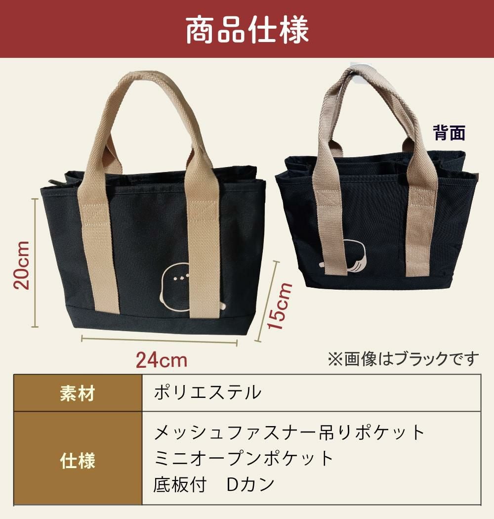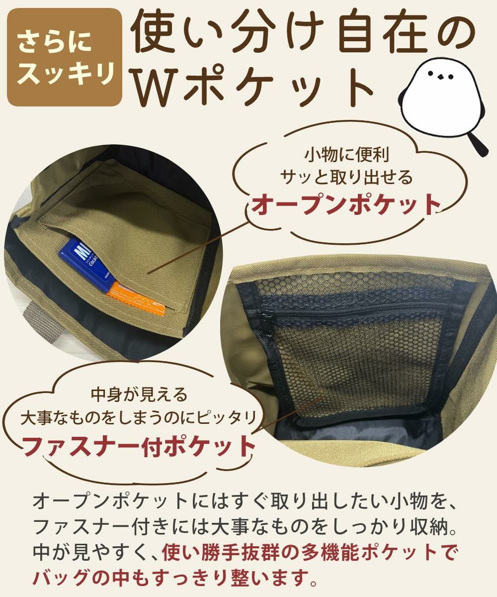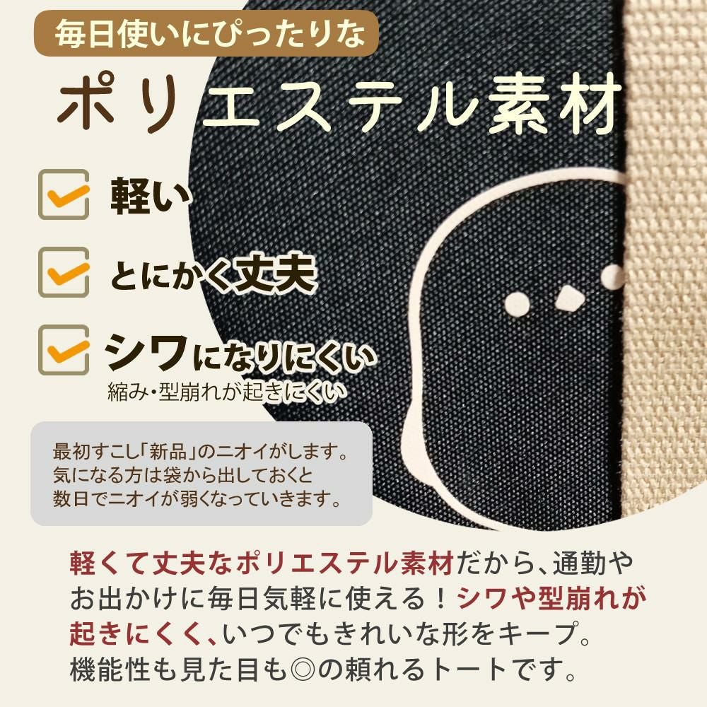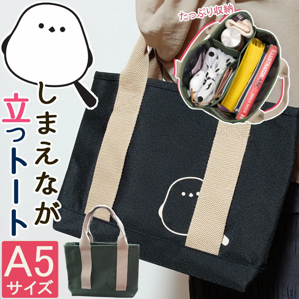 シマエナガ トートバッグ レディース 厚手 丈夫 ミニトート 仕切り付 A5サイズ バッグ ブラック ベージュ (レビュー特典有)