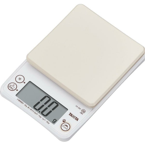 ペット の健康管理に最適な TANITA タニタ の CA-200IV は、 正確 な 計量 ができる ペットフードスケール 。 犬 猫 ウサギ フェレット モルモット など 小型 ペット の 栄養管理 や ダイエット に活躍 。 アイボリー の コンパクト デジタル 器具 です。