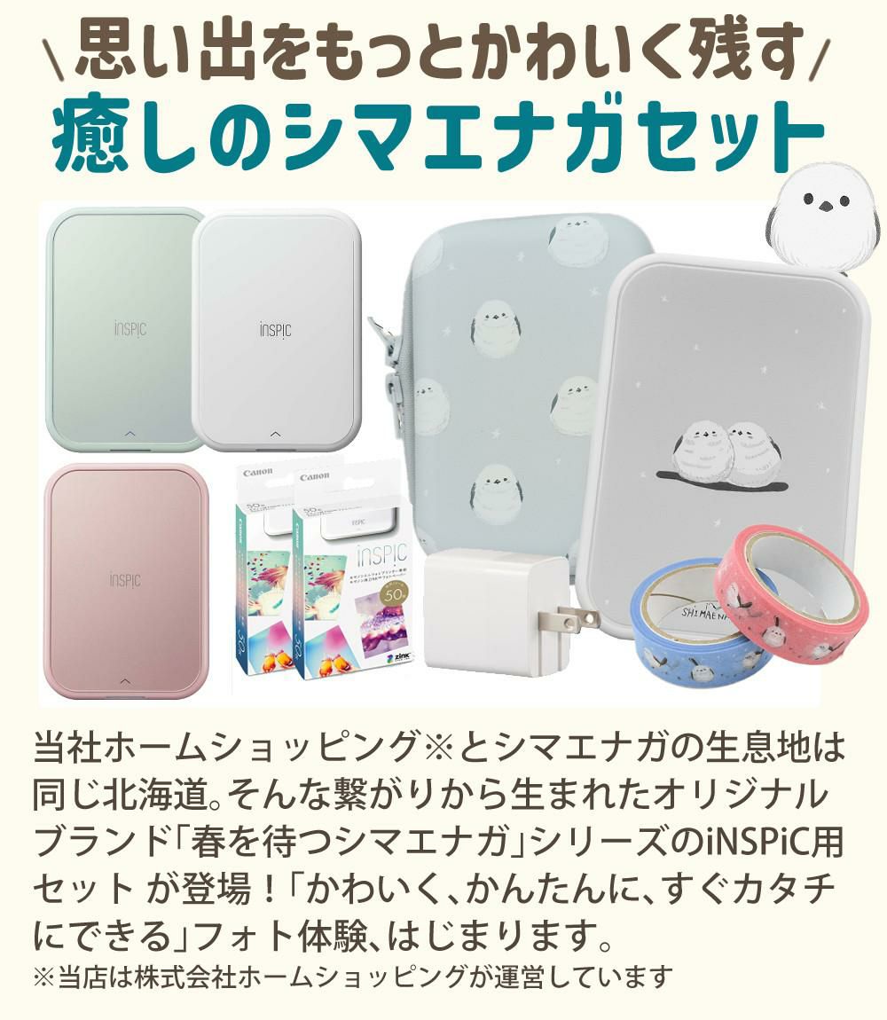 キヤノン ミニ フォトプリンター iNSPiC PV-223 ホワイト ブルー ピンク シマエナガ着せ替えプレート付 5点セット PV223