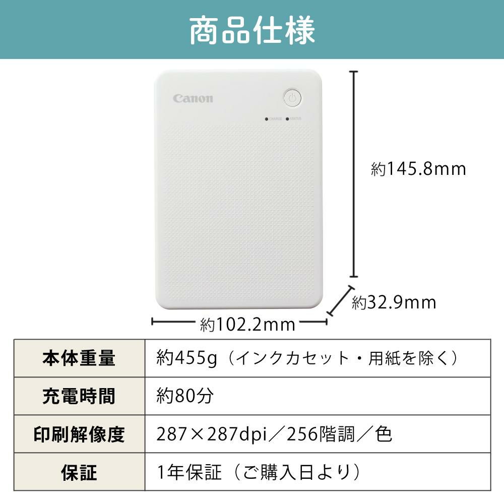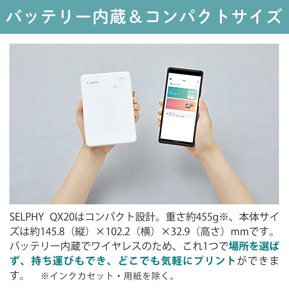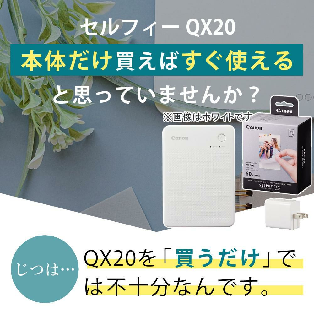 キヤノン スマホプリンター セルフィー QX20 ホワイト WH 6752C001 & 純正ラベル60枚 インクセット XC-60L & ACアダプター 3点セット