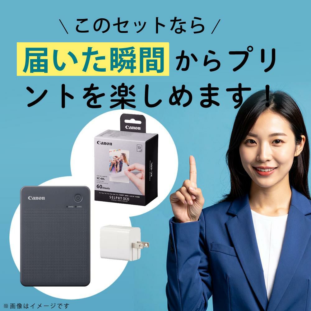 キヤノン スマホプリンター セルフィー QX20 グレー GY 6752C001 & 純正ラベル60枚 インクセット XC-60L & ACアダプター 3点セット