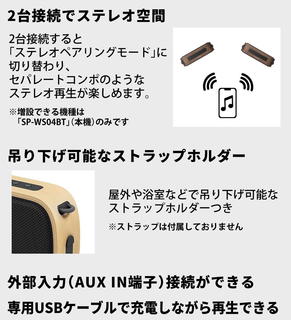 他の画像を見る レビュー特典 ポータブル ワイヤレス スピーカー 水しぶきを気にしない 天然木の防水スピーカー Victor ビクター ポータブルワイヤレススピーカー (バスウッド/ウォールナット) 防水 天然木 Bluetooth SP-WS04BT 週末2%OFFクーポン 販売価格 ¥ 22,880 税込 カートに入れる お気に入りに登録する (0件)