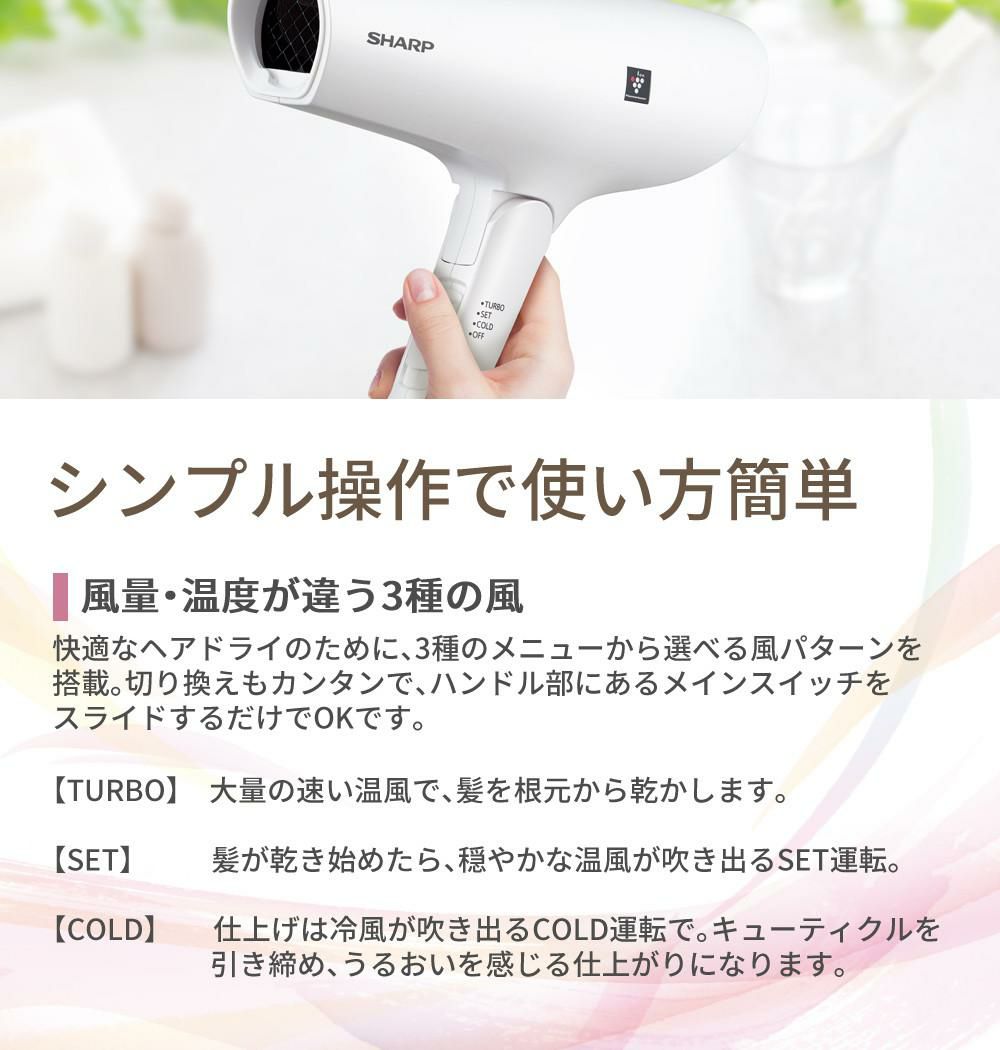 他の画像を見る シンプル 簡単操作 大風量 美髪 SHARP シャープ ドライヤー プラズマクラスター 3段階 ターボ IB-RP7 シャープ プラズマクラスター ドライヤー IB-RP7-W ホワイト 壁掛けホルダー付き 大風量 シンプル操作 速乾 美髪 ヘアケア 週末2%OFFクーポン 販売価格 ¥ 11,780 税込 カートに入れる お気に入りに登録する (0件)