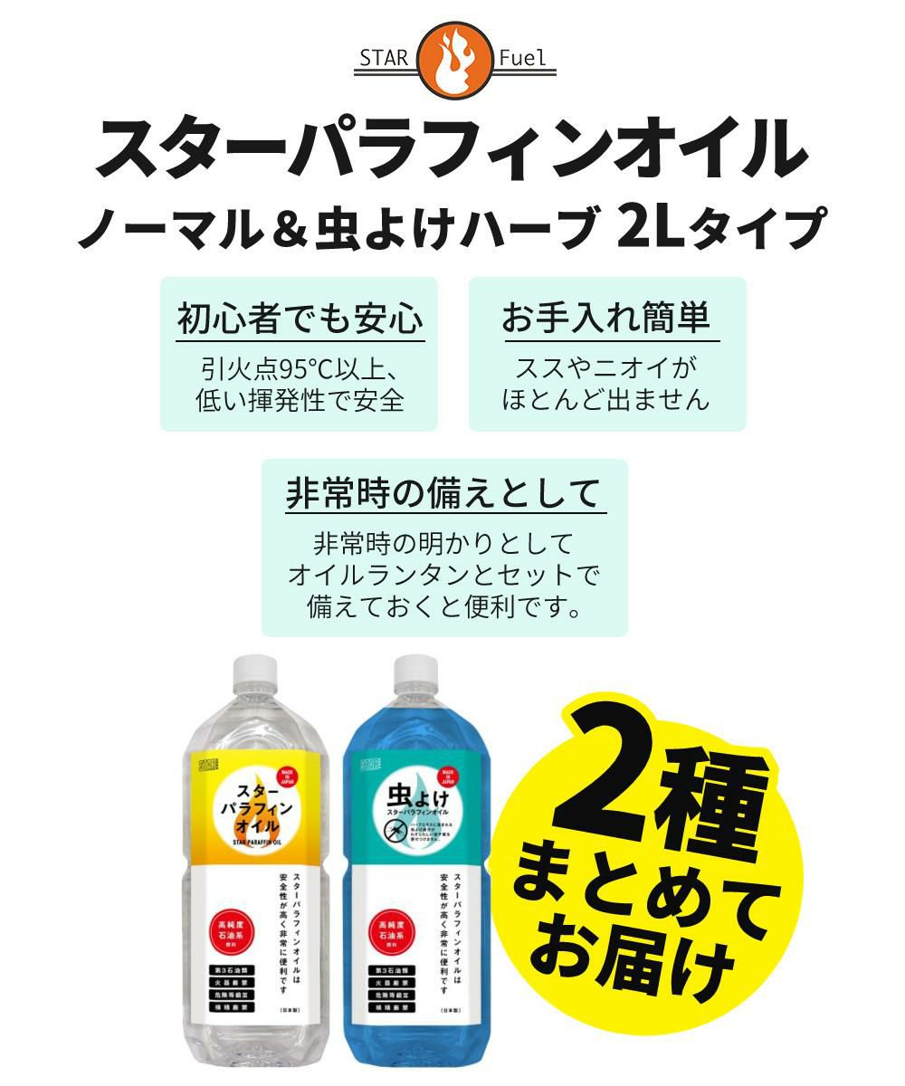 他の画像を見る 12876+12877 スターフューエル スター パラフィンオイル 2L & パラフィンオイル 虫よけ ハーブ 2L セット 週末2%OFFクーポン 販売価格 ¥ 5,780 税込 カートに入れる お気に入りに登録する (0件)