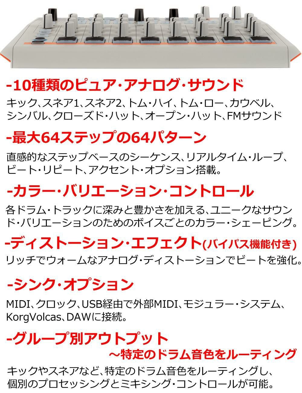 他の画像を見る パーカッション ビート・メイキング・マシン カスタマイズ サウンド・ポイント シーケンサー ディストーション ARTURIA DrumBrute Impact 1984 電子ドラム ヘッドホンセット(ラッピング不可) 週末2%OFFクーポン 販売価格 ¥ 47,520 税込 在庫切れ 詳細を見る お気に入りに登録する (0件)