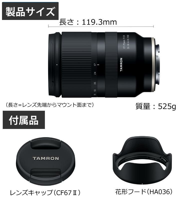 他の画像を見る タムロン 17-70mm F/2.8 Di III-A VC RXD ソニーEマウント用 B070 保護フィルター付 セット(レビューでプレゼント) 販売価格 ¥ 85,922 税込 カートに入れる お気に入りに登録する (0件)