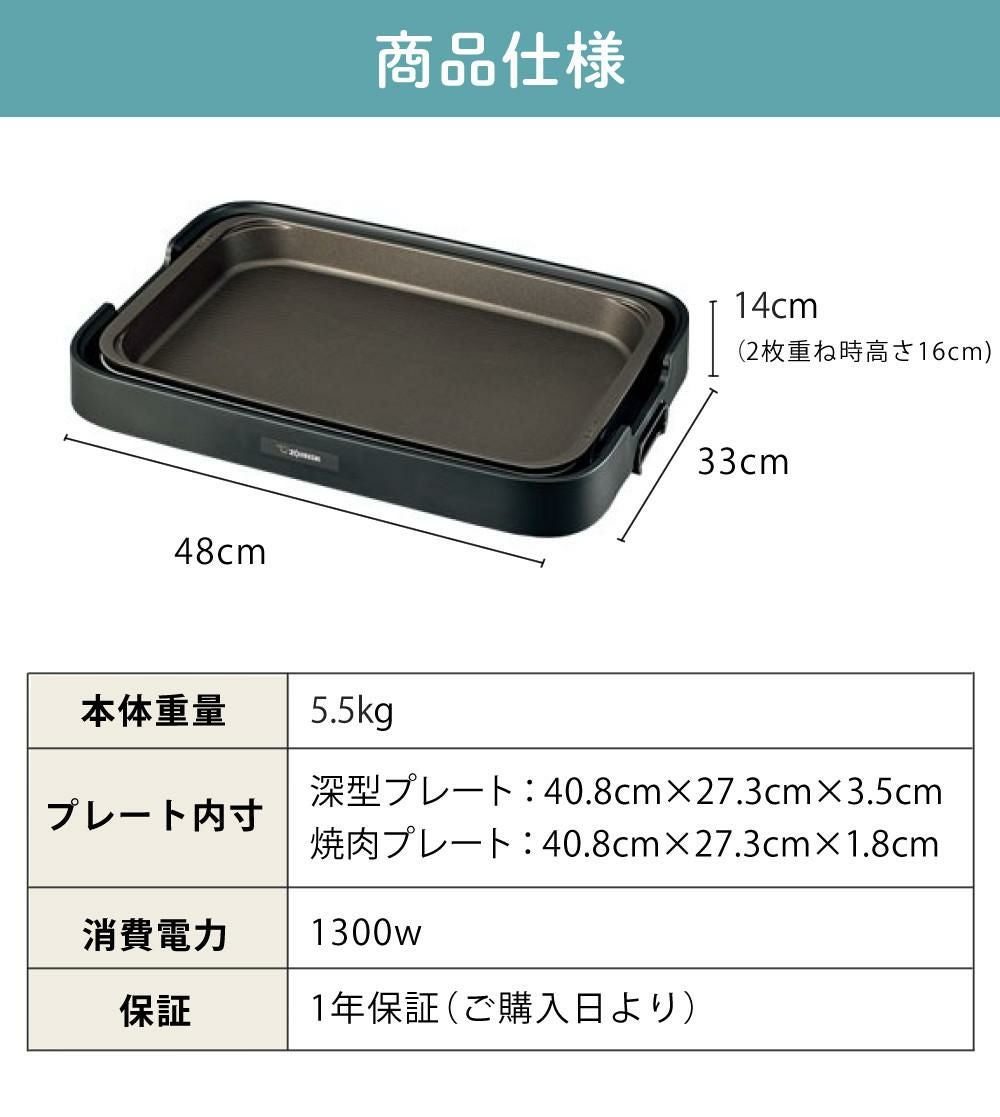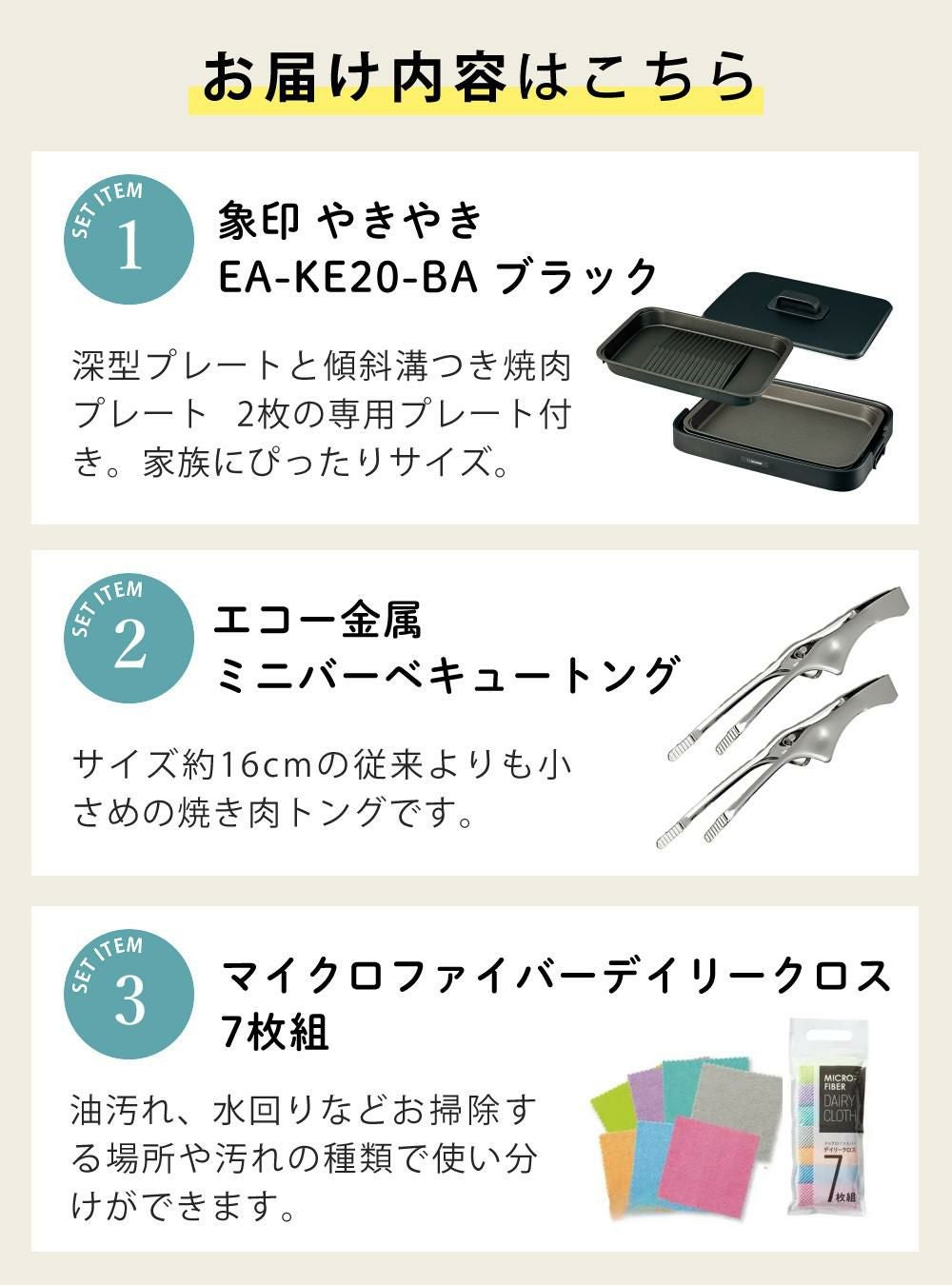 他の画像を見る ホットプレート 象印 2枚プレート やきやき EA-KE20-BA ブラック トング クロス付き 3点セット ホットプレート 象印 2枚プレート やきやき EA-KE20-BA ブラック トング クロス付き 3点セット クーポン対象外 販売価格 ¥ 12,500 税込 カートに入れる お気に入りに登録する (0件)