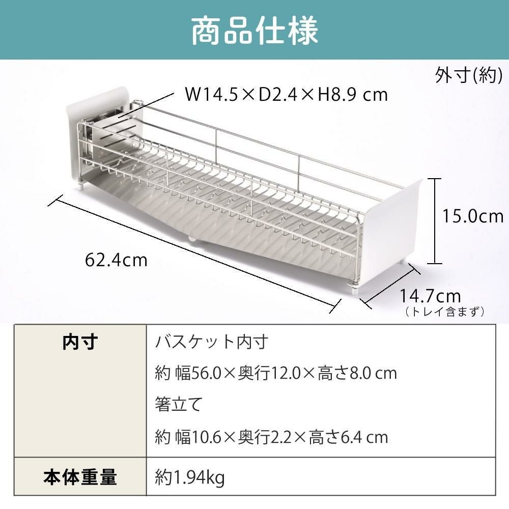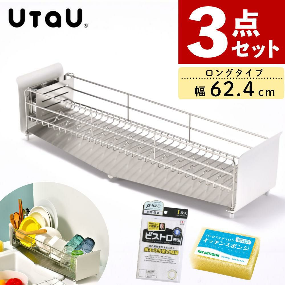 他の画像を見る 水切り シンク上 排水 ステンレス 水切りかご スリム キッチン収納 バスケット 一人暮らし 二人暮らし 食洗機 生活 水回り 台所 UtaU 水切りラック ロングタイプ ピュアホワイト ふきん&スポンジ付き 3点セット (ラッピング不可) 販売価格 ¥ 12,816 税込 カートに入れる お気に入りに登録する (0件)