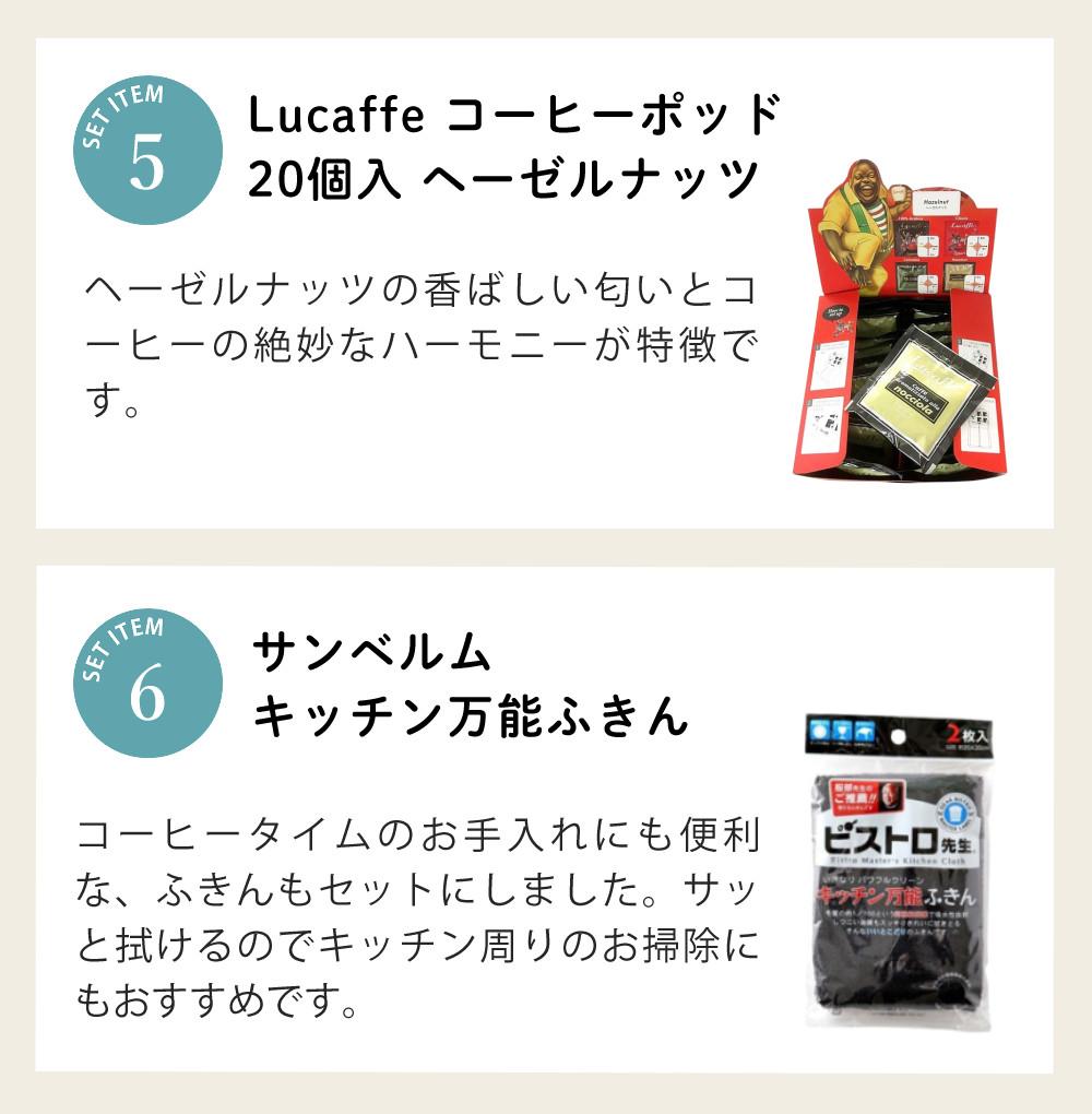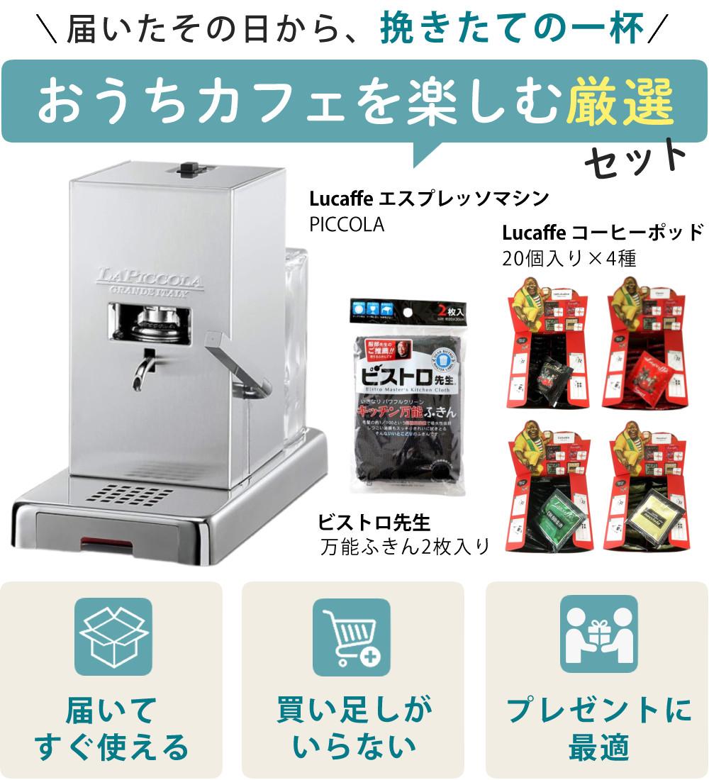 他の画像を見る 家庭用 カフェ 本格 エスプレッソマシンセット Lucaffe ルカフェ Lucaffe エスプレッソマシン PICCOLA シルバー 家庭用 カフェ 本格 コーヒーポット4種 ふきん付 6点セット 週末2%OFFクーポン 販売価格 ¥ 19,800 税込 カートに入れる お気に入りに登録する (0件)