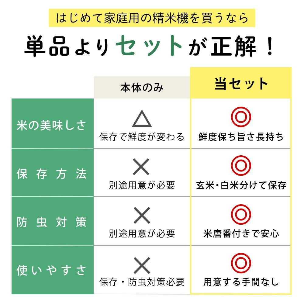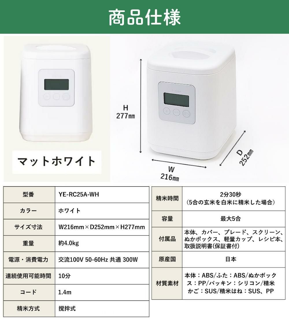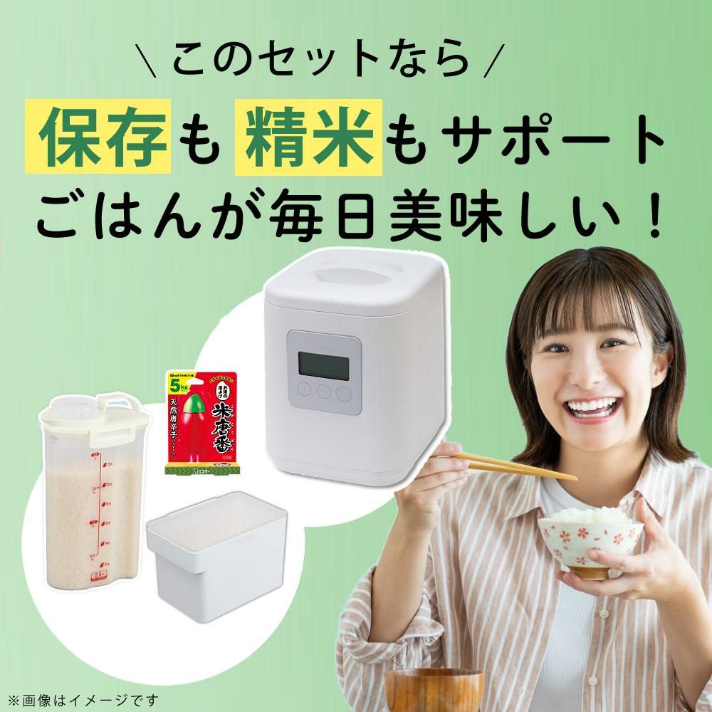 他の画像を見る 5合対応 稼働音を抑えた家庭用精米機 山本電気 精米機 家庭用 i-rice アイライス YE-RC25A-WH ホワイト + シンク下米びつ + 冷蔵庫用米びつ + 米唐番5kg用セット 週末2%OFFクーポン 販売価格 ¥ 38,400 税込 カートに入れる お気に入りに登録する (0件)