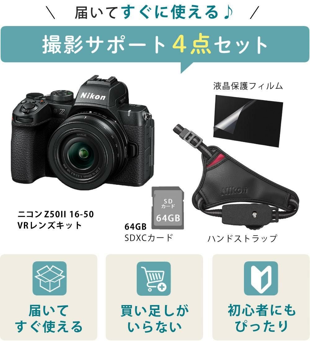他の画像を見る Nikon Z50II ミラーレス一眼 ハンドストラップ付で手ブレ対策 ニコン ミラーレス一眼カメラ Z50II 16-50 VR レンズキット APS-C 高画質 4K動画対応 (スナップ撮影4点セット) クーポン対象外 販売価格 ¥ 168,400 税込 カートに入れる お気に入りに登録する (0件)