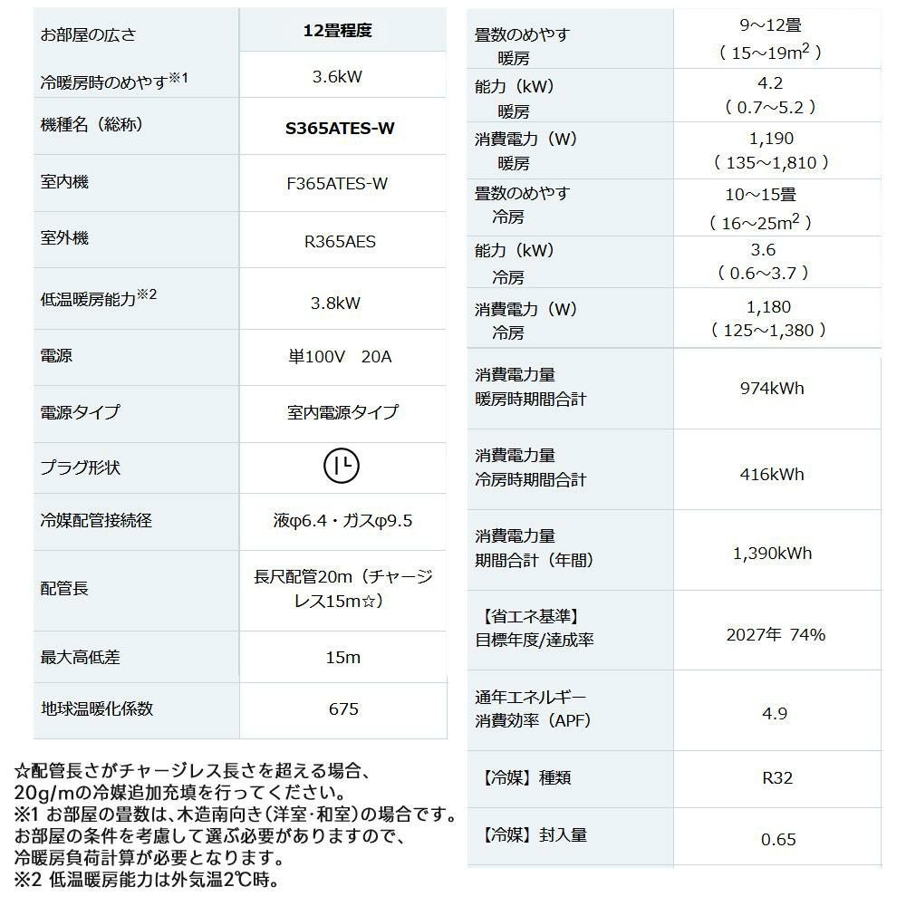 他の画像を見る ダイキン エアコン 12畳 Eシリーズ 2025年 S365ATES-W (F365ATES-W+R365AES) 室外機カバーセット 販売不可地域あり (ラッピング不可) クーポン対象外 販売価格 ¥ 100,800 税込 カートに入れる お気に入りに登録する (0件)